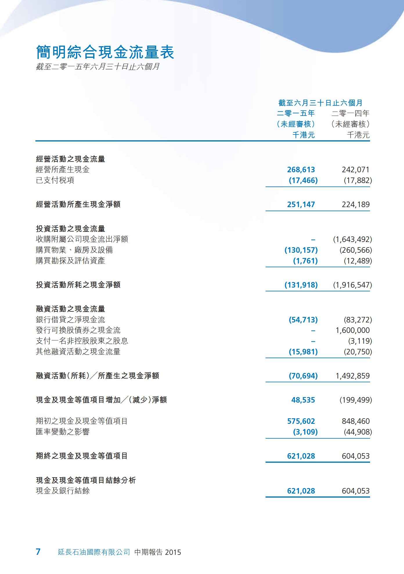 簡明綜合現金流量表